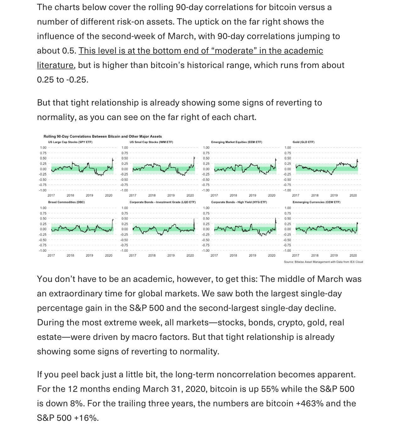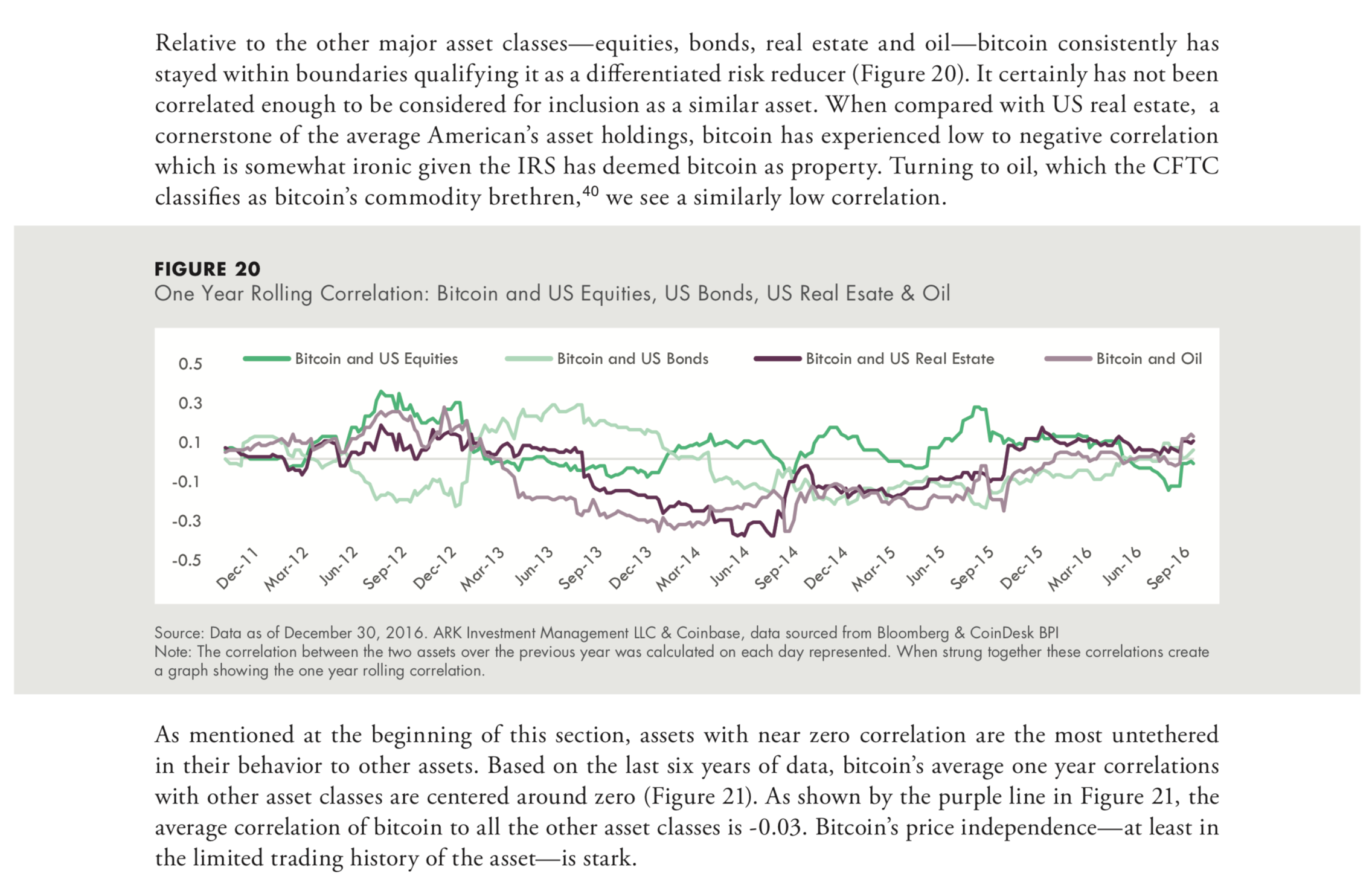 Interestingly enough Bitcoin isn’t even correlated with gold. Ark Invest uses this data to make the case for why Bitcoin has created its own, new asset class.