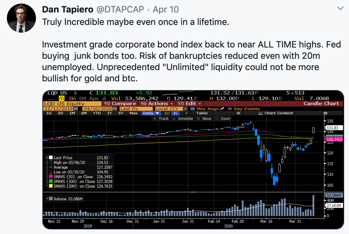 While the Fed panic buys everyones debt, student loan payments have been suspended for 6 months, New York has begun burying bodies outside of New York City, and unemployment numbers continue to rise as companies like Disney furlough 43,000 employees.