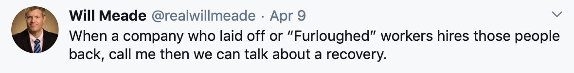Where are the bailouts for the working class? Do they think $1200 supplements two months of lost wages? They quickly realized that their initial relief to small and medium businesses wasn’t enough. Will they do the same for working class individuals or will they continue to hope for trickle down economics?